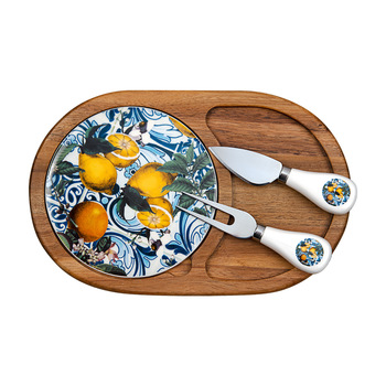 Acacia Wood Cheese Board Gift Set with Printed Design Mini Cutting Board & Cheese Knives-Bulk Christmas Gifts